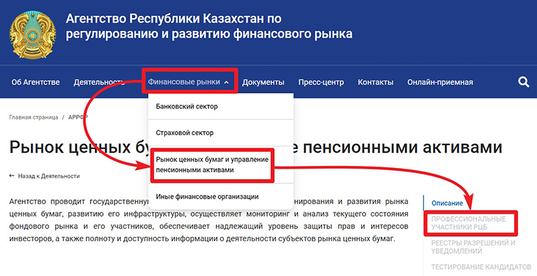 Биржевые провайдеры обязаны размещать копии документов на сайте. Обычно они находятся в разделе «Раскрытие информации». Однако не стоит полностью принимать за правду то, что компания пишет про себя. Есть 2 способа проверить брокера на лицензию в Казахстане в официальных источниках: