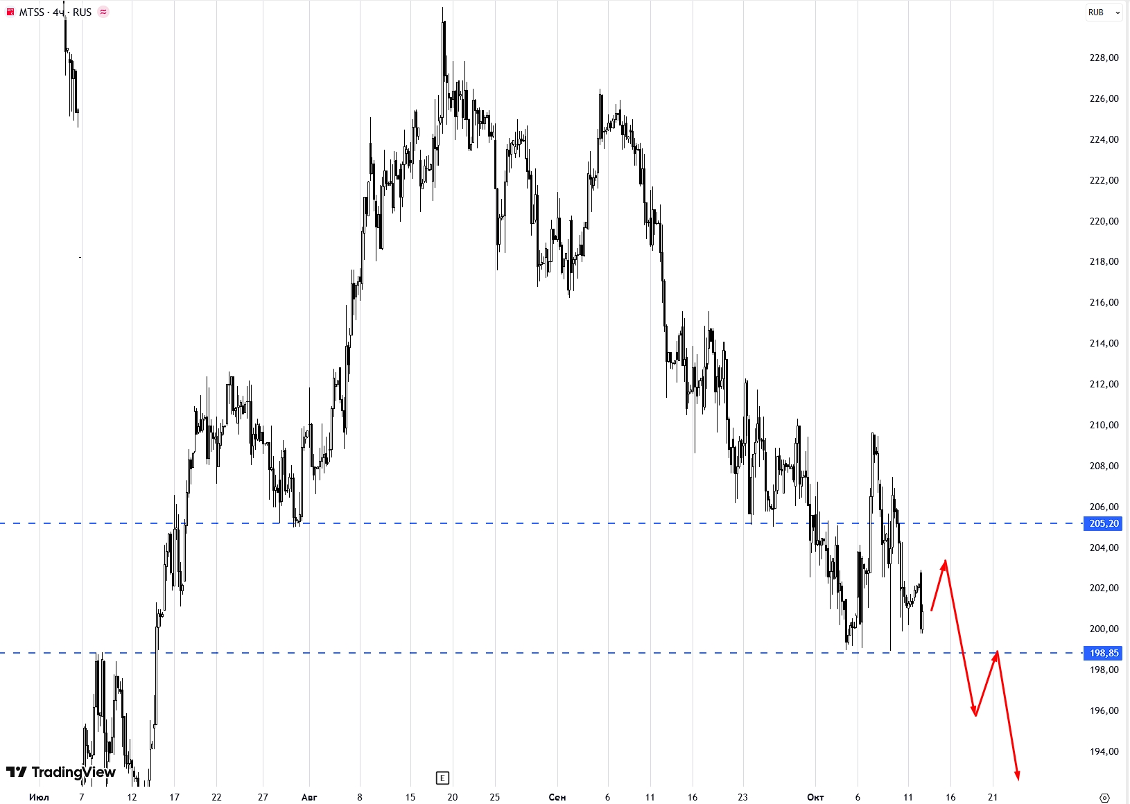 Но в техническом плане ценные бумаги демонстрируют не лучшую динамику. Произошло закрепления ниже важной отметки 205 рублей. И если в ближайшее время произойдет пробой уровня 198 рублей, то высока вероятность более глубокого падения.