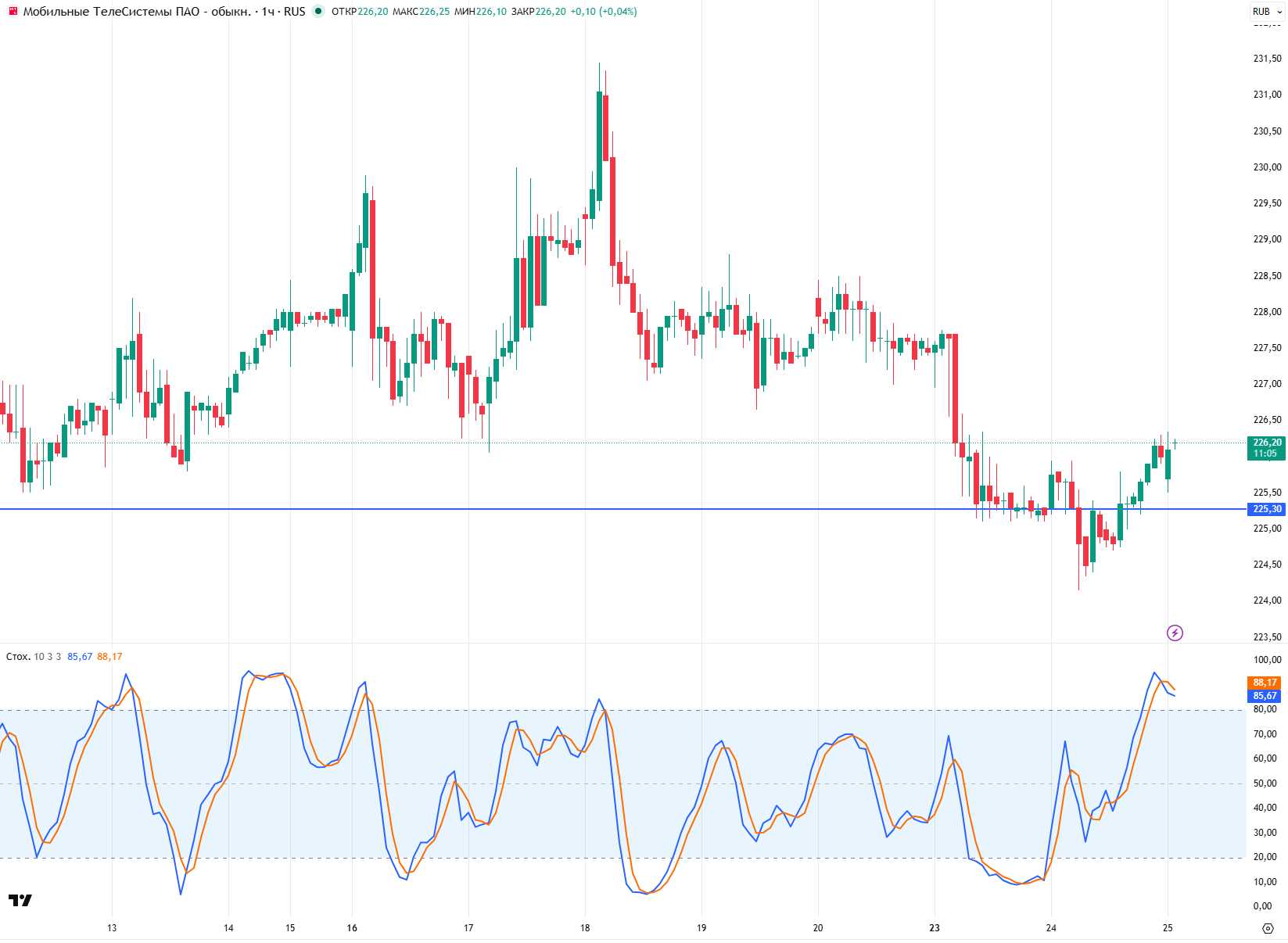 Пока ценные бумаги находятся в явной консолидации. Сейчас многое зависит от реакции котировок на уровень 225,3 рубля. Если удастся закрепиться выше него, то потенциально можно рассчитывать на краткосрочный рост.