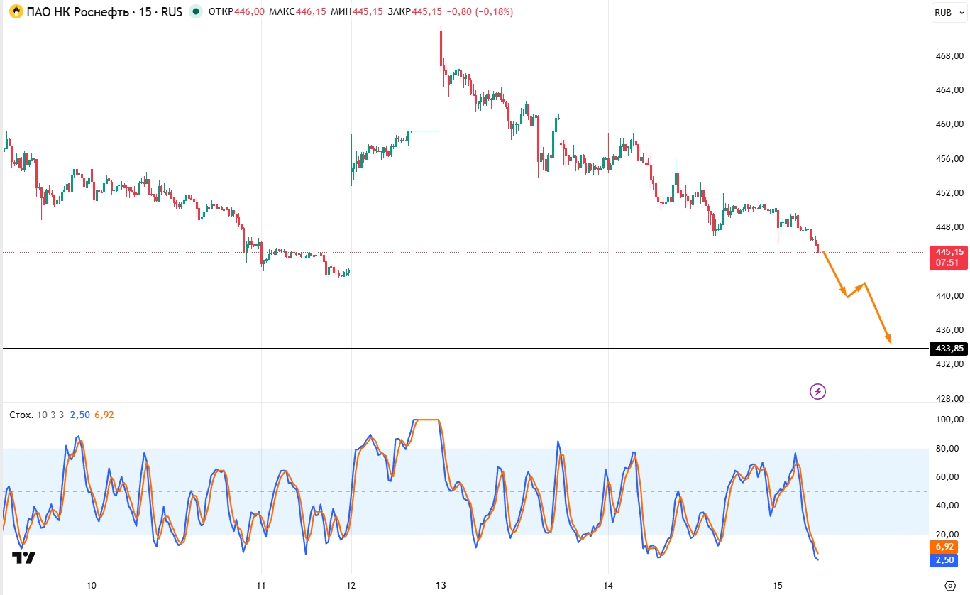 С технической точки зрения ценные бумаги пребывают в медвежьем тренде. Пока нет предпосылок к тому, что ситуация как-то измениться ближайшей перспективе. А потому есть вероятность дальнейшего падения ближе к 433 рублям.