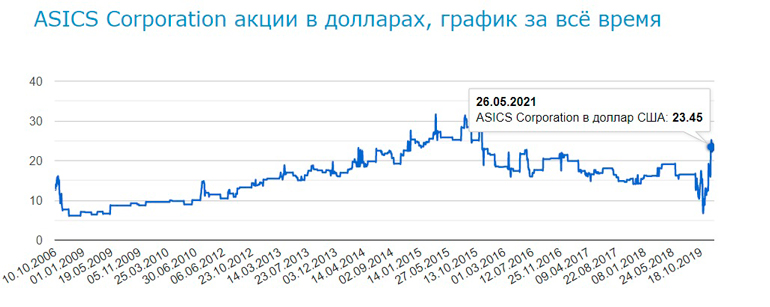 Это одна из самых щедрых компаний. Она платит дивиденды акционерам 2 раза в год. За последние 5 лет средняя дивидендная доходность составила 1,3%. Несмотря на всемирную известность, ASICS не входит даже в топ-30 эмитентов Японии по уровню капитализации.