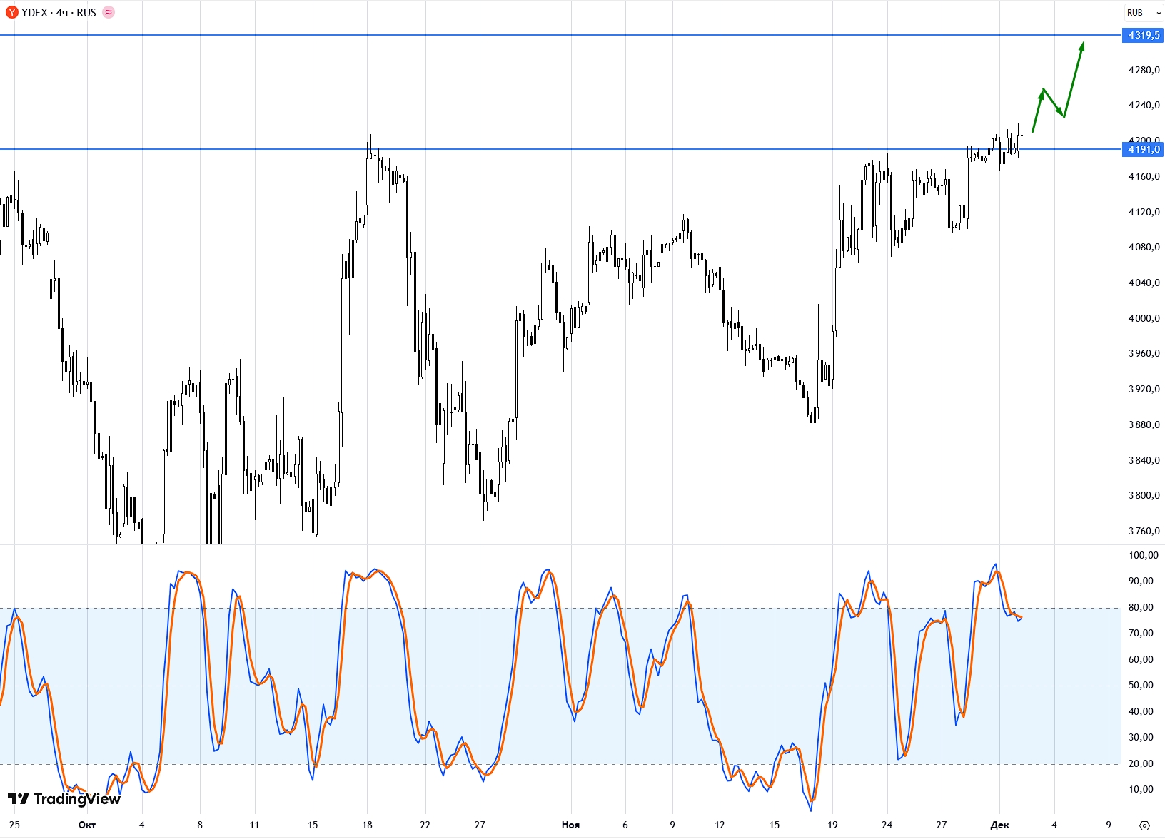 Если же говорить конкретно о технической картине, то она позитивна. Ценные бумаги укрепляют позиции с начала октября. При этом на текущий момент можно сказать, что цене удалось закрепиться выше отметки 4191 рубль. А потому есть шансы, что уже скоро состоится ретест сопротивления 4319 рублей.